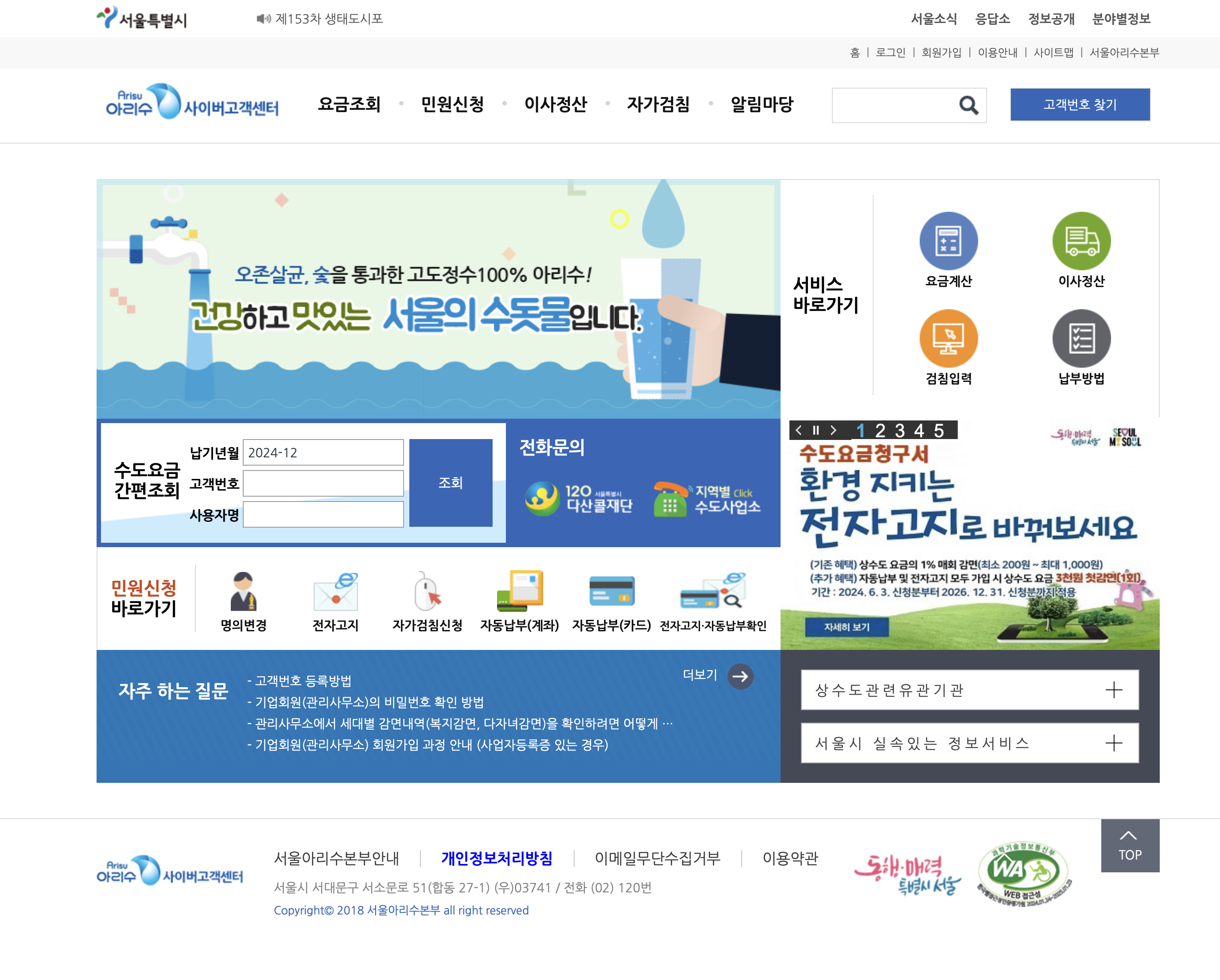 아리수 사이버고객센터와 함께 편리하고 효율적인 수도 생활을 누리세요!