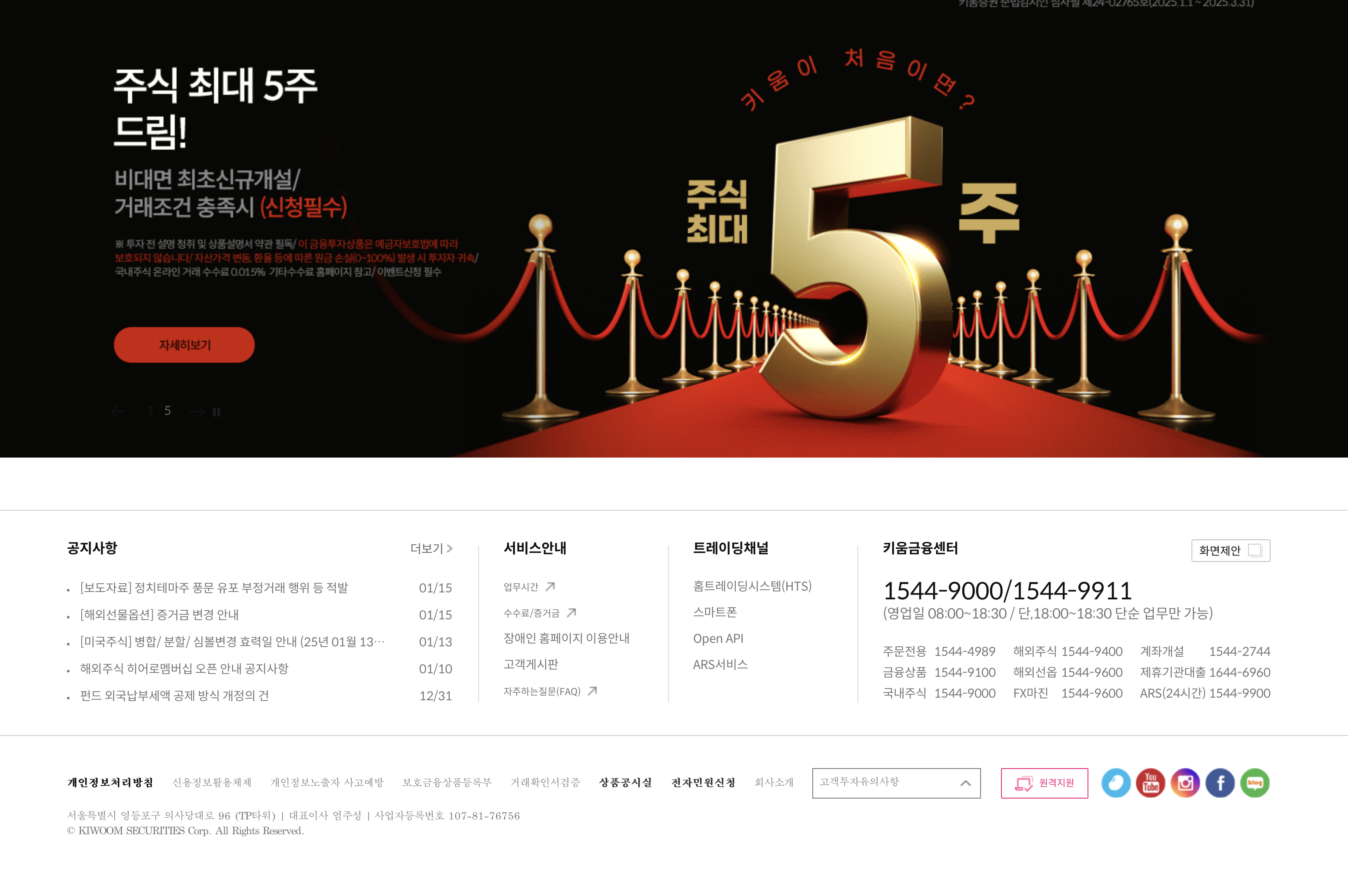 - 보이스피싱 예방: 키움증권을 사칭해 문자를 발송하거나 출처 불명 앱 설치를 유도할 수 있으니 주의