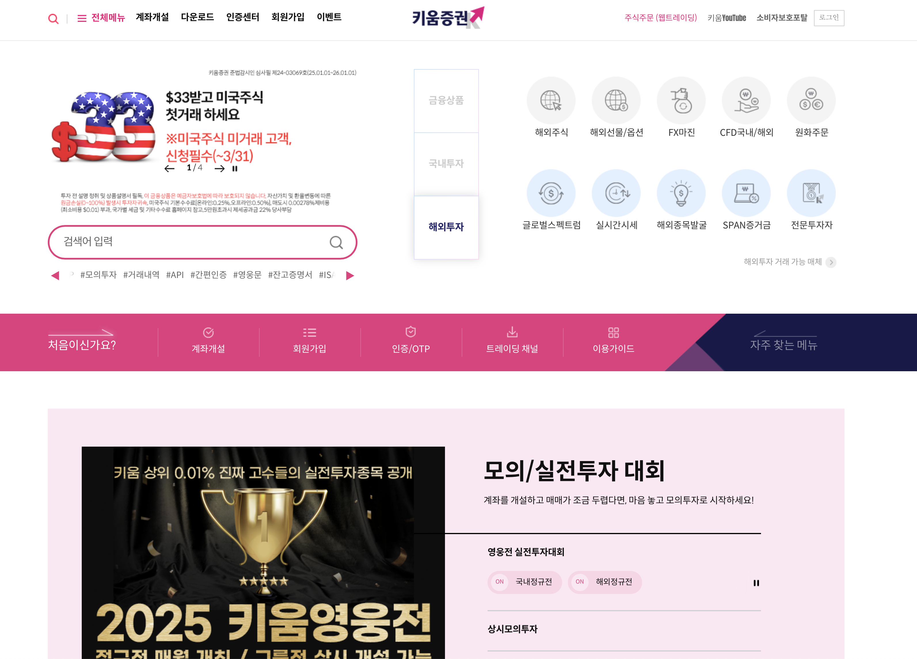 - 홈페이지 상단 메뉴 중 ‘MY키움’ 클릭